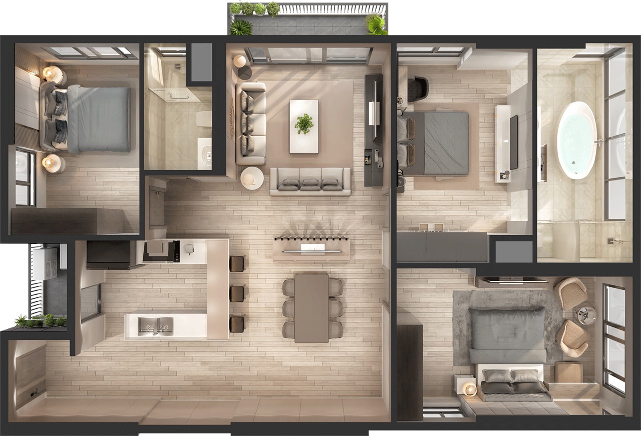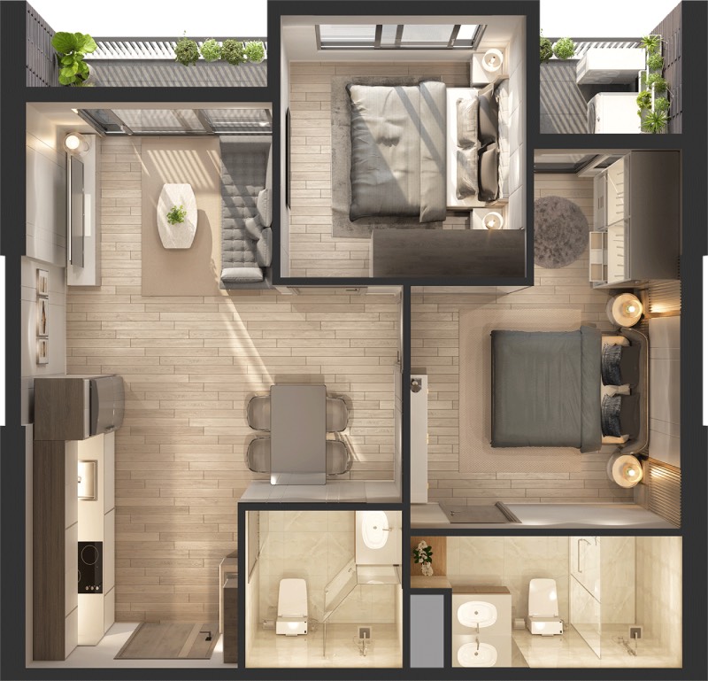 Tất cả các căn hộ đều được thiết kế vuông vức và tối ưu trên từng milimet